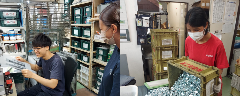 ・金属加工品は様々な大きさ、種類がありバーにかける作業は経験が必要ですが、